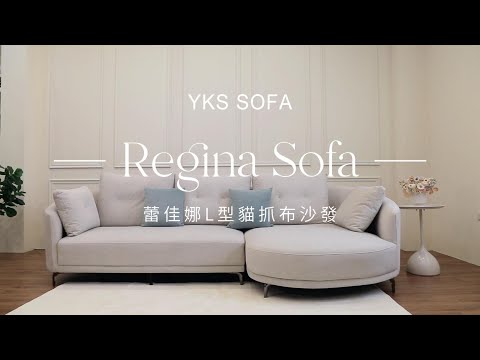 蕾佳娜 L 型貓抓布沙發選用防潑水耐抓布,經 SGS 測試具耐磨、抗起毛球特性,適合有毛孩與小孩的家庭使用。高密度彈力棉坐墊搭配乳膠粒+聚酯棉靠枕,兼顧柔軟包覆與穩定支撐,長時間使用也能維持舒適彈性。