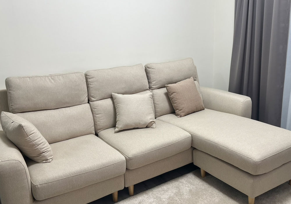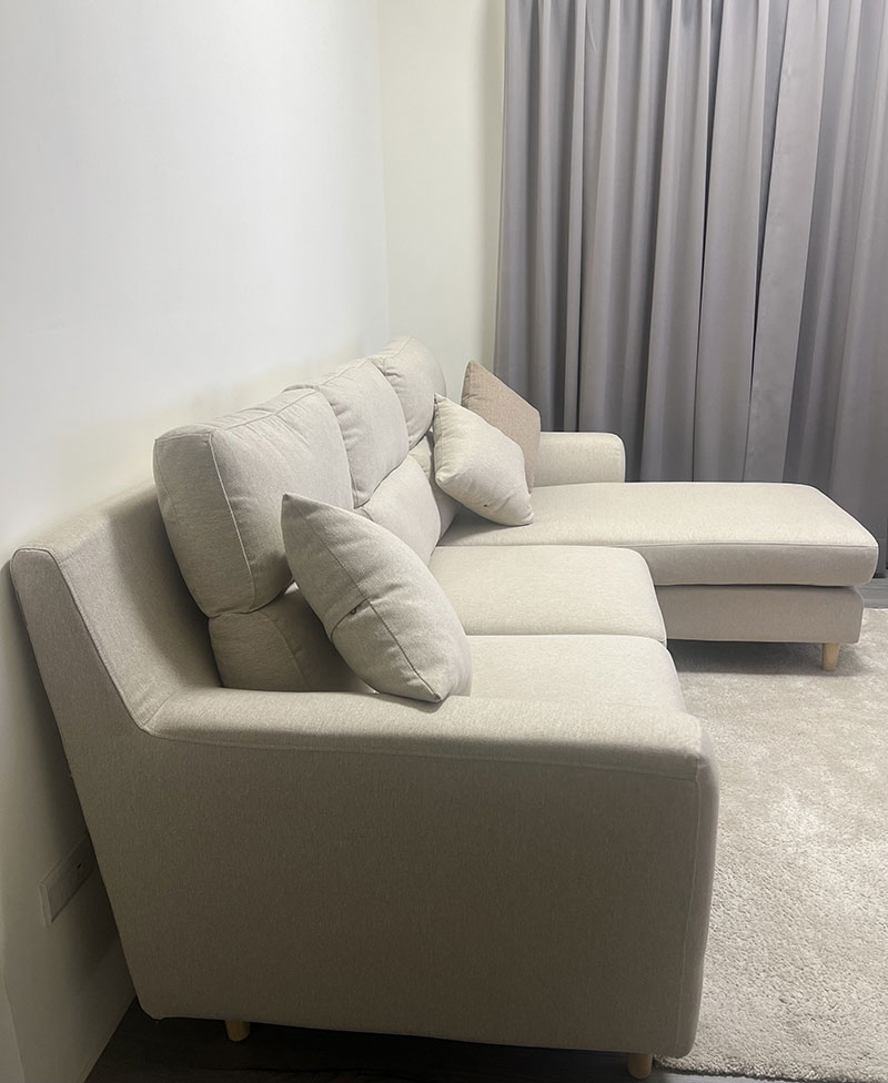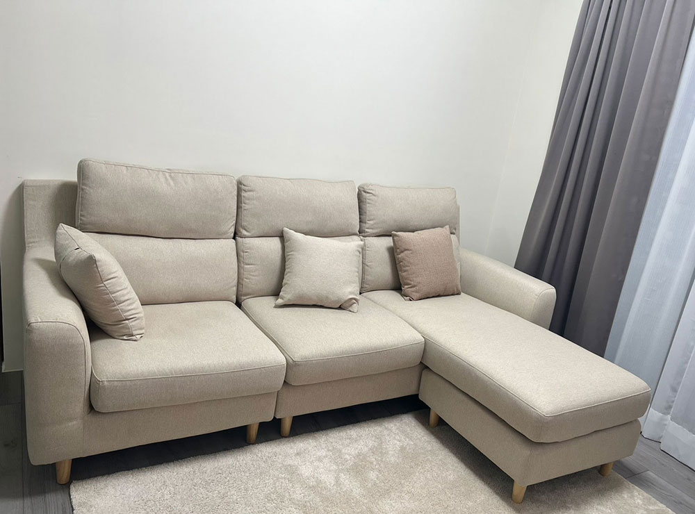 Tiffany小姐因為明確知道想要的風格與條件,因此挑選過程快速順利。伊甸L型布沙發提供舒適坐感、顏色可選、防潑水好清潔,從選購到配送都讓人覺得安心,是兼具機能與居家美感的實用款式。